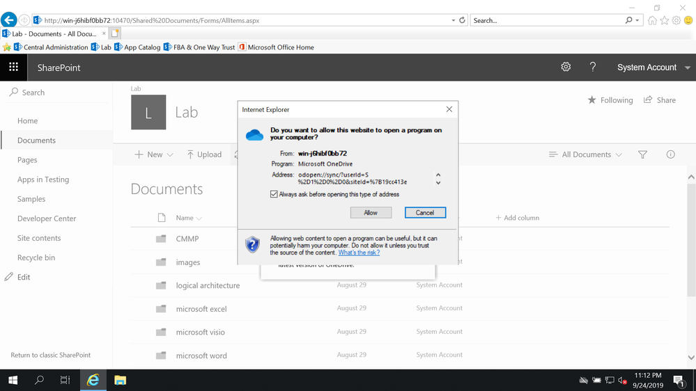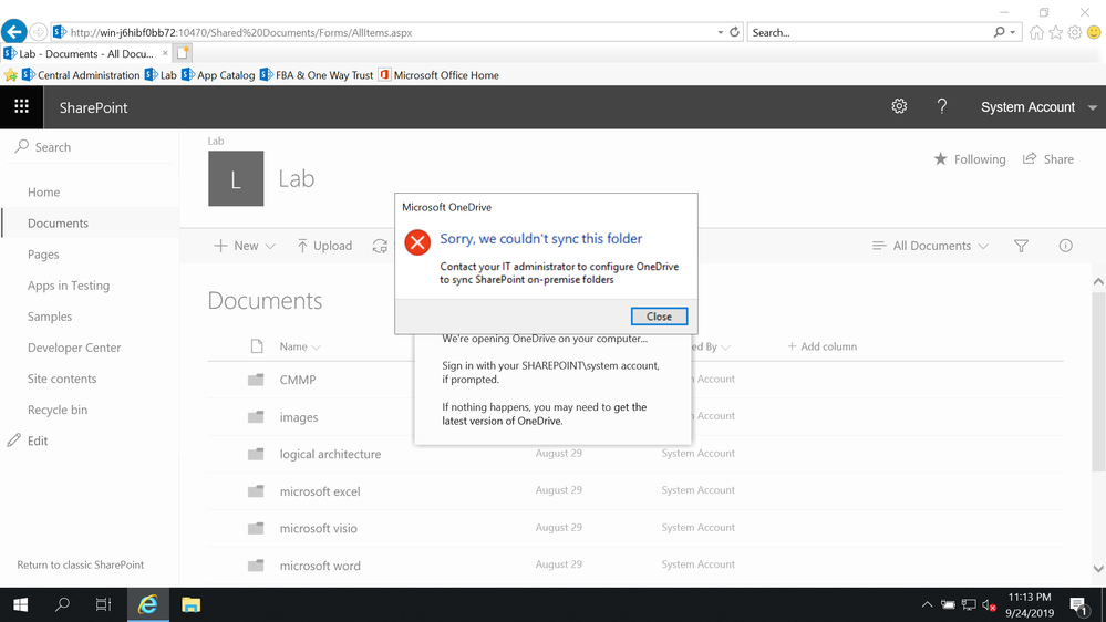 thanks for your reply. but when I click "Sync", it will ask me to get the last version of OneDrive and install it. after that, I click "Sync" button once again. it show as shown below. I have no idea on it. before if we use the SharePoint On Premise, we just type the URL of library then connecting it. that's all. but current, what kind of step I do something wrong?