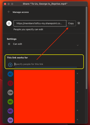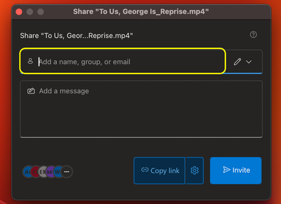 When I send out a link to a file (a video, in my case) for review, I limit permissions to certain individuals by typing their names into the field highlighted below.
