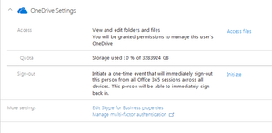 I am FirstRelease so this may not be visible to all, but I am now seeing OneDrive settings for users in the Admin Portal. Fantastic to see a "sign-out" feature which signs the user out of all Office ...