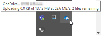 And if we look at the OneDrive Details it shows fast and good process and counting the MBs, but after a second or two it starts from scratch again. And this continues like that until the upload is done, which takes an hour for a file with 50MB.