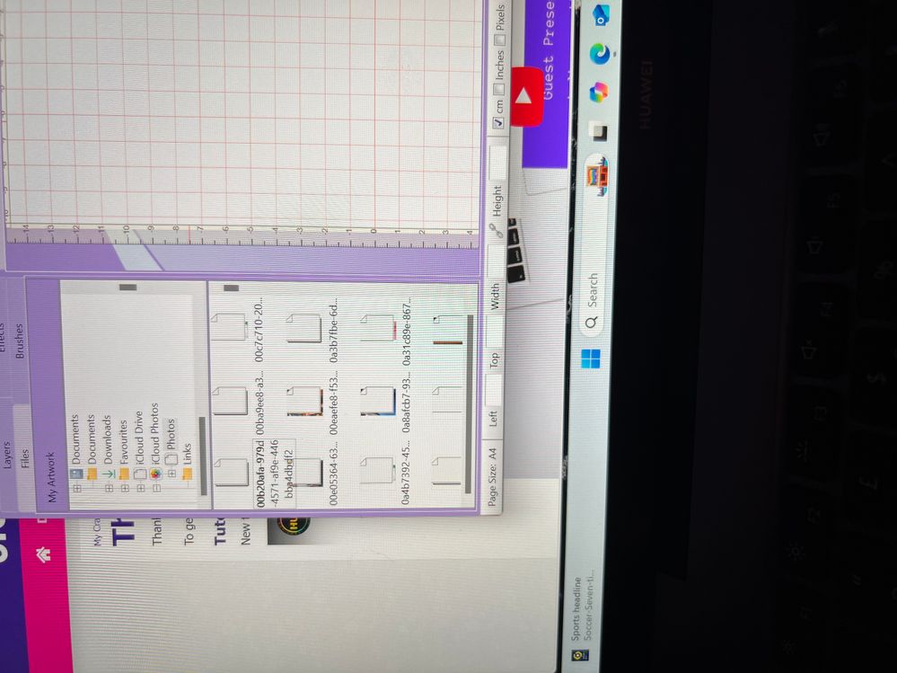 It looks like you're using a graphics or design program (possibly CraftArtist or Serif DrawPlus) on Windows 11, and when trying to view or import photos from a folder (possibly synced with OneDrive), you're seeing blank white page icons over the images — like A4 sheets covering them.