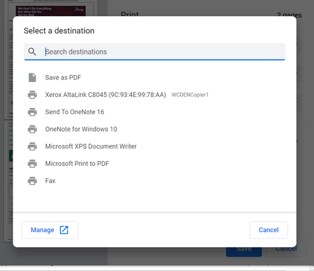I would like to be able to "print" a PDF directly to One Drive. When I open the PDF, select Print I would like to be able to select a "One Drive" option, however these are my choices. I am using ...