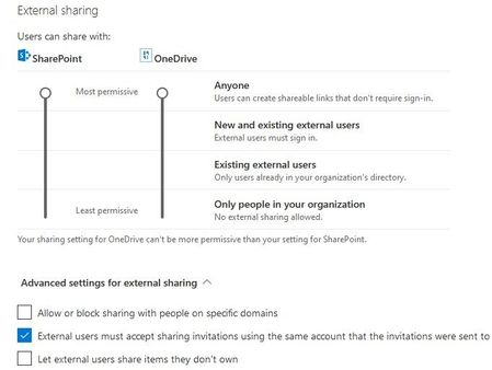 I have OneDrive Sharing at it's most permissive level, but when I share a file with an external user they get a message "Your organization doesn't allow you to download, print, or sync using this dev...