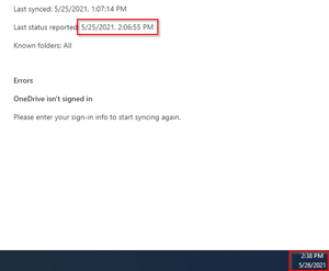 We are testing the OneDrive Sync Health public preview internally and at a couple test sites. Today I noticed a user had an error saying OneDrive isn't signed in (Last status report time was yesterda...