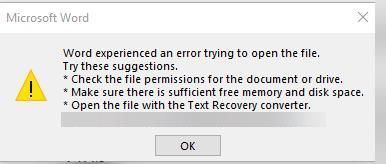 - pausing OneDrive sync allowed the document to open in Word - unpausing it caused the problem to return