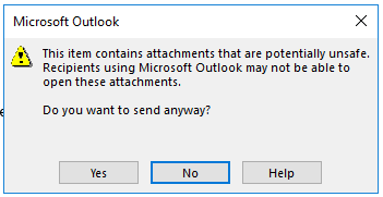 Since the update to Version 1705 (Build 8201.2102 Click to run) we receive a warning about potentially unsafe attachments when we insert .png or .jpg files in the email.