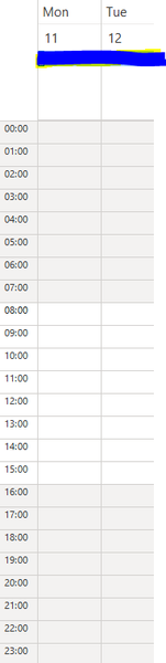 Calendar showing all 24 hours of day when work settings are set between 8 hours