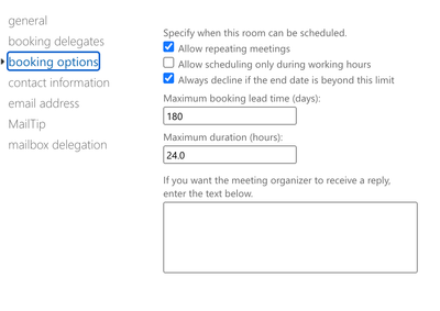 Is there a way to change/alter the email that goes out stating that your request is pending approval for managed rooms? We would like to show who the delegates are in case the user needs to contact them.