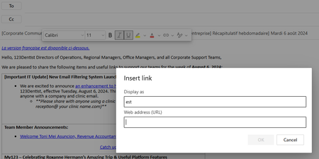 In the past, I used to be able to include bookmarks within an Outlook email message to point to a different section of the email (ex: click here for French), which would take the user directly to tha...