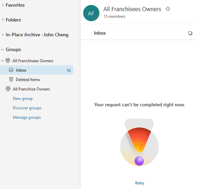 Exchange Online (Plan 1) - Group Emails - Your request can’t be completed right now