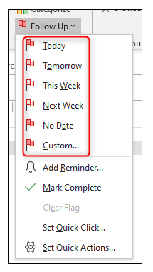 I want to set follow ups with a specific date/time on emails. When I select an email and select "Follow Up" I see: