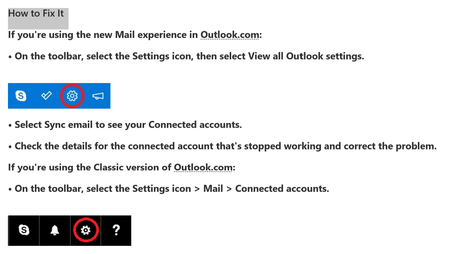 I changed my password for Outlook. Then I get an email saying Microsoft doesn't have permission to get my emails. These instructions are no help. Nothing happens when I select my account to sy...