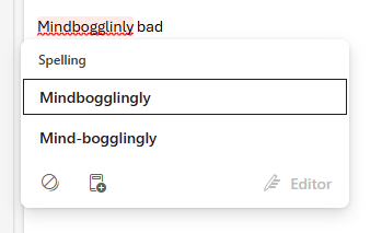 New outlook spelling editor: Extremely unintuitive UX