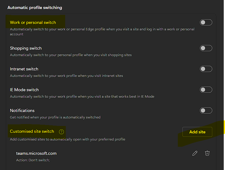 There is a setting in Microsoft Edge on macOS under Settings > Profile > Profile preferences labeled "Open external links in another profile when recommended by external applications". It seems like it ought to be possible for Outlook to "recommend" that a link in an email in my work account be opened in the Outlook profile signed in with my work account, and likewise for my personal account. How would one go about enabling that?