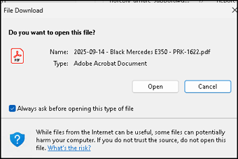 I get the standard File Open warning dialog and then it opens in Sumatra PDF, my Windows Default PDF viewer.