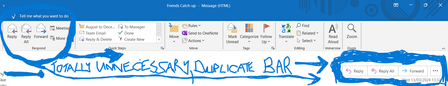 Outlook 2016 - New "REPLY, REPLY ALL, FORWARD" Bar: RIGHT HAND SIDE of Subject Heading(4 April 2024)