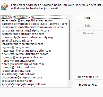But it never blocks any of them, listed, and I never get anything in the Junk Email Folder.