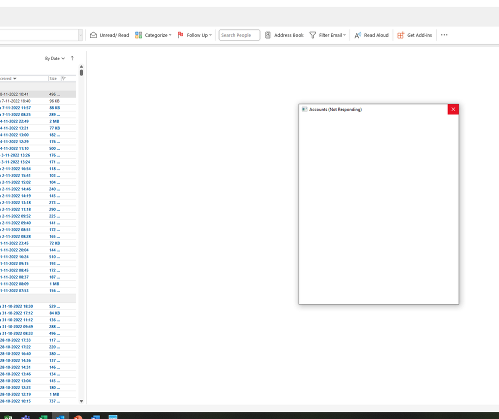 When I open up outlook, it crashes. This white box appears. Please find the below screenshot.