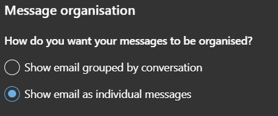 I keep having to select 'show email as individual messages' every time I log into Outlook 365 because it will not save and keeps defaulting back to 'Show email grouped by conversation'. Any idea why this happens?