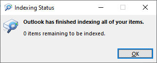 I have Microsoft 365 on Windows 10 Home x64. In Outlook search has stopped finding emails I’ve received since about 12/15 2021. Anything before that is found but if I search for an email I received after that date Outlook says “No results”. I have checked indexing status and it says “Outlook has finished indexing all of your items” (see attachment). I have Search set to "All Mailboxes". It works fine for emails older than about December 15 2021 but doesn't find anything after that.