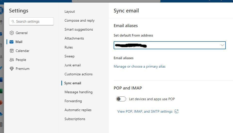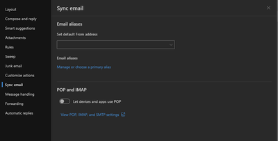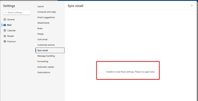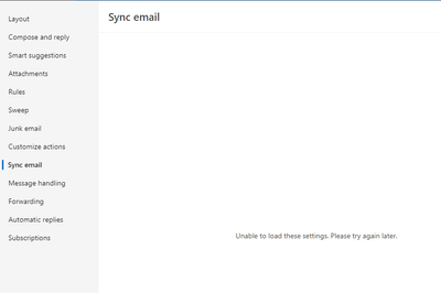 Outlook.com Sync email - Unable to load these settings. Please try again later.