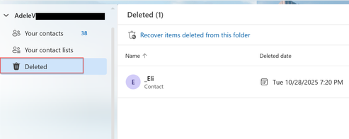 If you are in New Outlook, can you look in the Deleted Contact folder and empty it? I tested both the MS 365 paid subscription and Outlook.com (free account) and did not have any issues. But I only deleted 1 to 2 contacts.