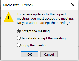 This is completely bizarre. It'd be useful to have a practical suggestion for a workaround if this is indeed an intended change by the "shared calendar improvements" option as nowhere in the article is there any guidance on how *else* to accept drag meetings to other people's calendars without being forced to copy it. I'm astounded that they're simply removing a functionality used by thousands of people on a daily basis.