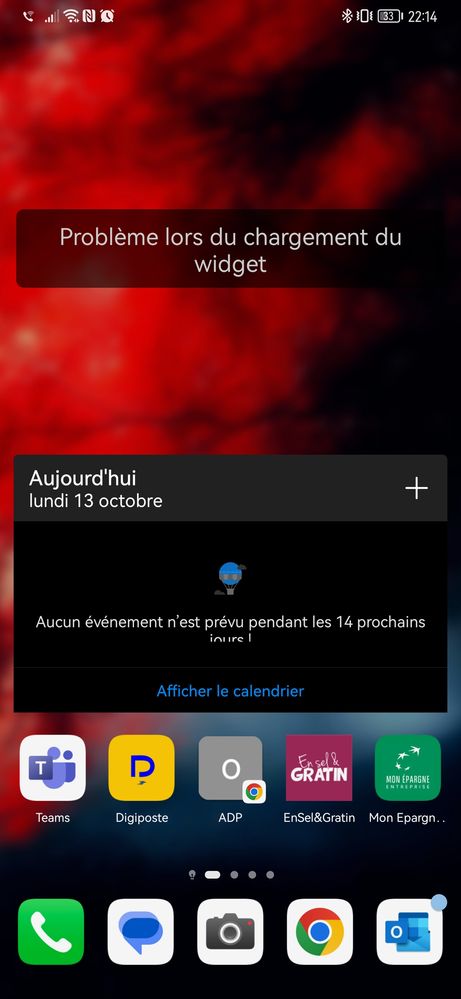 Outlook e-mail widget on Android stopped working