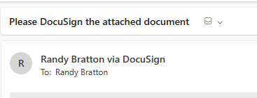 I did a little more testing. I sent a request to DocuSign where the recipient was Abe Lincoln, but I used a non-M365 email account I could access via iPhone, web mail, or Outlook (on a different computer than the one I'm seeing the issue). When DocuSign sent the email request to "Abe", his name was displayed as the recipient.