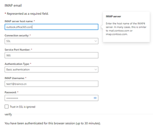 The connection configuration is as follows The error message is as follows The connection test failed Test details Collapse all Testing IMAP for a u...