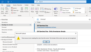 Good morning, There are some useful rules I've created in my Outlook Web Access, but apparently incompatible with my Outlook software. My problem is if do not click on the error box shown in ...