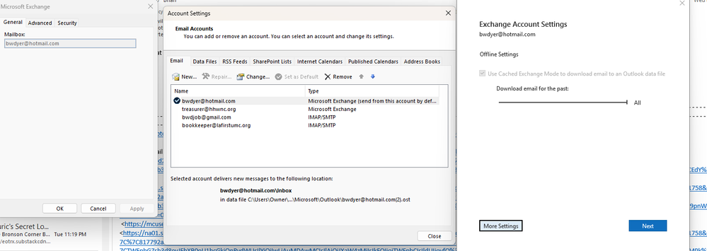 --iPhone now might require you to use your phone password (passkey) for businesss 365 accounts/Exchange (the only time I have seen this anyway) and that is not connected to Outlook desktop at all. Only for the phone. So for each account you add to your phone, you might have to put in your phone password/passkey for security. And now iPhone can make you wait an hour for Microsoft 365 Exchange accounts (your 2nd in the list).