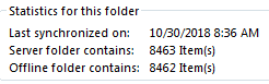 However, when I have the Room's calendar open in the Calendar view, it is not showing up. I've waited 1 hour so far and still nothing. I've tried increasing the sync rate, closing/reopening the calendar, and still no update in the calendar view. The calendar properties (shown below) says it was last synced at 8:36 AM, it is now 9:44 AM.