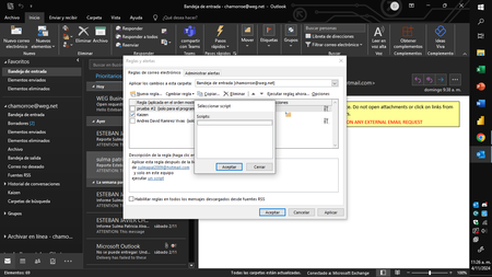 Good morning, I am creating a script in Outlook for a rule that forwards the email to the name that appears in the subject. The thing is that I create the modules and save them, but when I am configu...