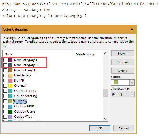 I´m trying to solve a customer request (regarding Offce 365) where they would like to have certain common color categories for all employees - that means, we would like to push it via server group policy/registry...