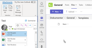 Unable to drag and drop a PowerPoint, Excel and Word files from New Outlook to New Teams