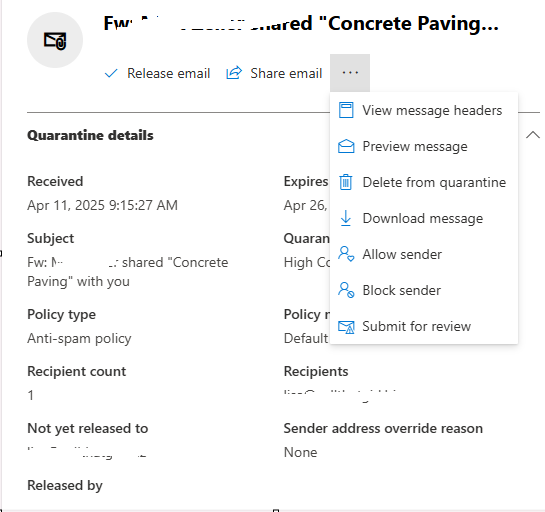 Considering this affects my personal account, the quarantine is not an option, and is why we need Microsoft to step up.