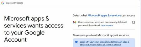 When connecting Outlook to Gmail get 'Select what Microsoft apps & services can access...'