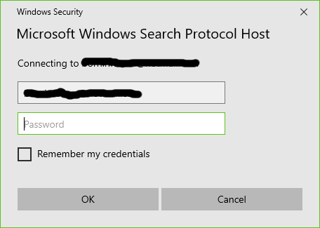 Why does Outlook ask me to log into Windows Search Protocol Host?