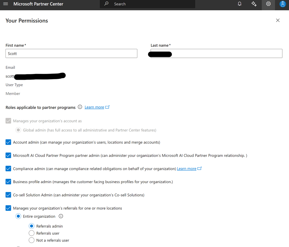 To pre-answer some your questions: I'm a global admin on this domain, I have all partner administration roles assigned to me.