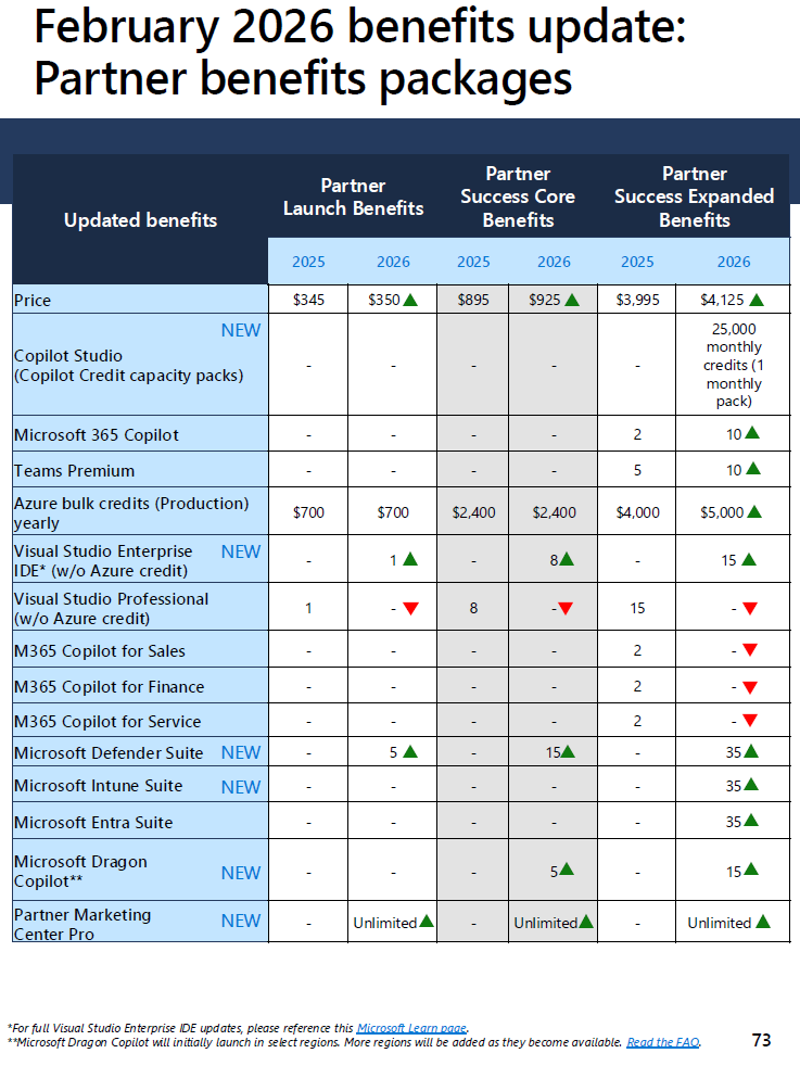 New benefits have been released as of February 13, 2026. Partner Blog | Expanded partner benefits are now available: What’s new in February 2026 | Microsoft Community Hub
