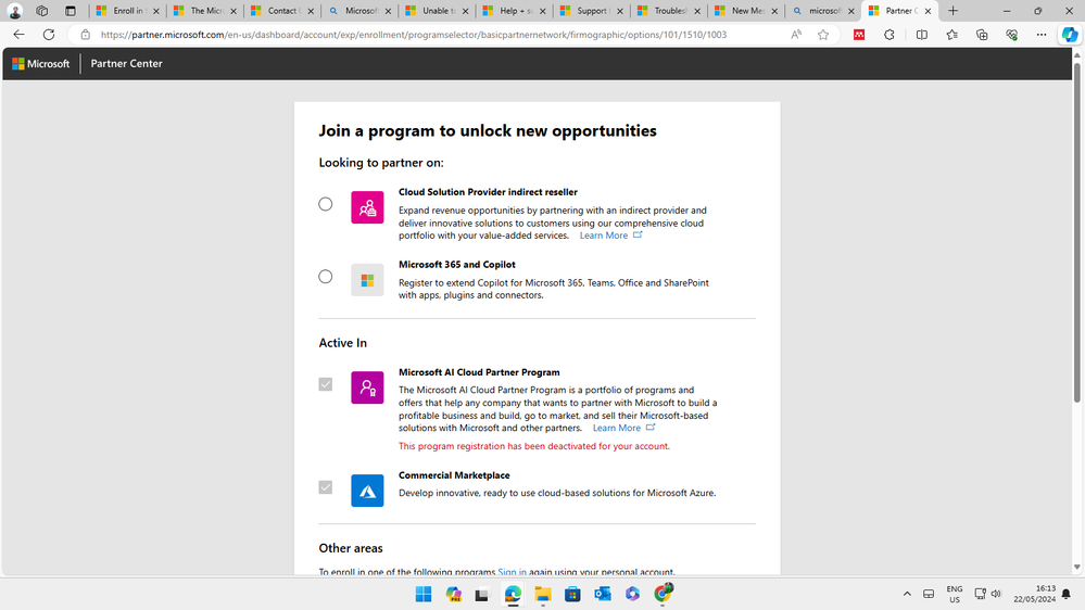 Microsoft AI Cloud Partner Program registration has been deactivated for your account