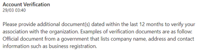 httpslearnmicrosof2380 please follow the direction of their messaging. You need to provide them with valid documents to verify your business.