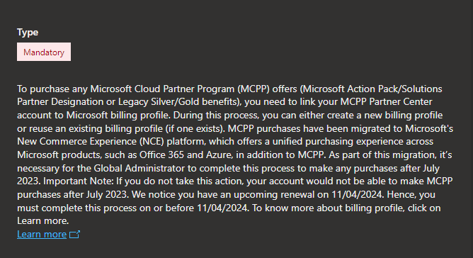 Each time I login into my Partner account I have the following mandatory action item to complete: