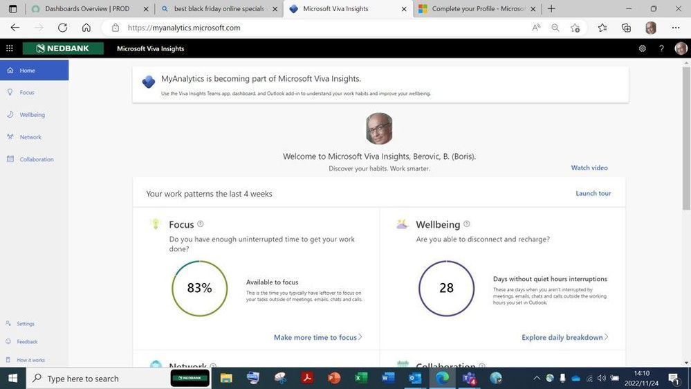 3. As mentioned above, there is no full breakdown - only aggregated insights based on average times calculated through your calendar and Teams/Outlook collaboration.