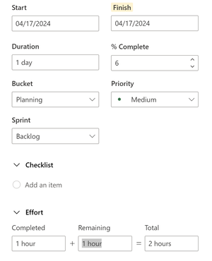 I am fiddling with Project for the Web / Premium Planner in an attempt to make YouTube tutorial content. I'm creating tasks, trying to make some sample content, and setting the completed/remaining ho...