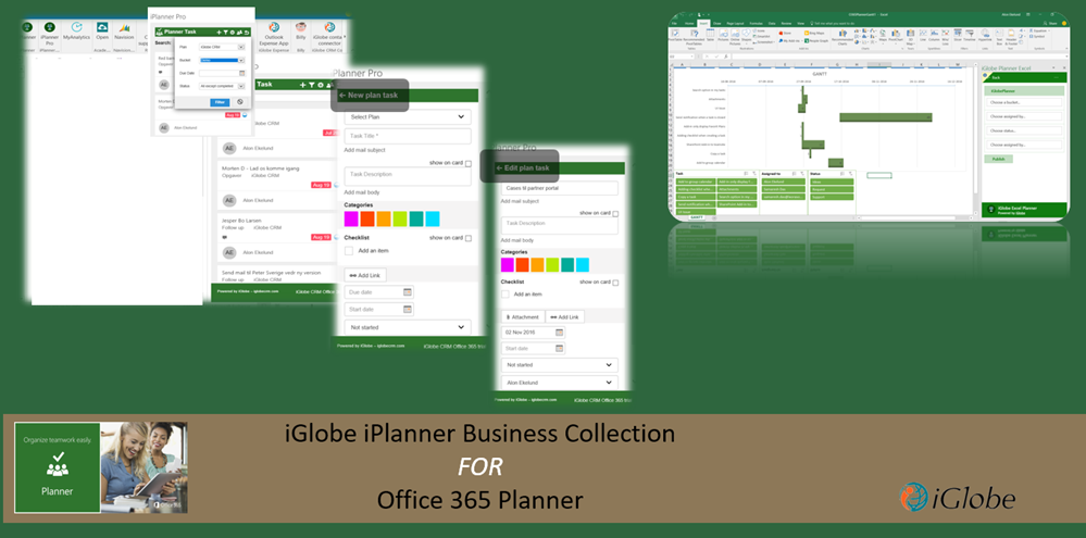 iPlanner Pro for Outlook is a part of iPlanner Business Collection. You'll get additional tools that will enable you to manage your tasks and projects seamlessly across O365. On top of that you will be able to manage tasks and resources with your most favorite tool, Excel.