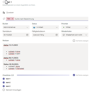 MS Planner | Add in notes field a timeline with date when subtasks are done