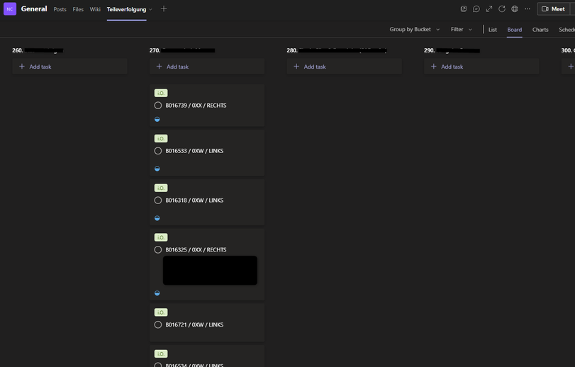 wir benutzen Teams um unsere Teile zu verfolgen. Jedes Teil hat dabei eine eigene B-Nummer.