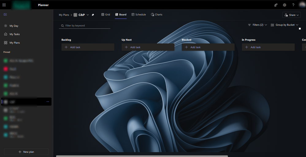 - Lisa_WagnerCopper ContributorAs of this morning mine is now a black background, and while I don't mind this background color for some things, NOT for Planner. There's no option to change it either. This makes me so mad, I'm beyond sick and tired of the types of changes I'm seeing in M365 across the board that are causing more problems. This is common sense to allow people the ability to change backgrounds, some people may have a harder time seeing what's on the screen. What is going on? This is unacceptable!